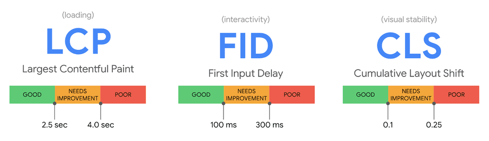 Largest Contentful Paint (LCP): A website's LCP is the time it takes to load the main content on a page. Google wants LCP to happen within 2.5 seconds of when a page first starts loading.